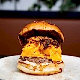 100 gramlık alevde ızgara köftesi, yumuşacık enfes Fransız brioche ekmeği, taze çiftlik yumurtası, cheddar peyniri, karamelize soğan, orijinal sosu ve soğan kıtırı ile et sever lezzet. Patates cipsi eşliğinde servis edilir.