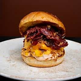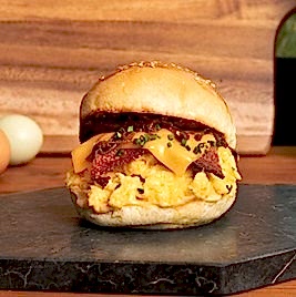 Yumuşacık enfes Fransız brioche ekmeğiyle; taze çiftlik yumurtası, dana bacon, cheddar peyniri, kıtır soğan, orijinal sosu ve karamelize soğanı ile dayanılmaz lezzet. Patates cipsi eşliğinde servis edilir.