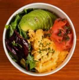 Mevsiminde toplanılan Akdeniz yeşillikleri, taze çiftlik yumurtası, avokado, cheddar peyniri ve kıtır soğanı ile somon fümeli lezzet.