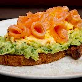 Kızartılmış ekşi mayalı ekmek üzerine avokado püresi, taze çiftlik yumurtası ve somon fümenin verdiği enfes his.