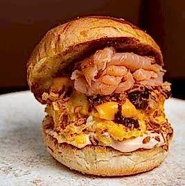 Yumuşacık enfes Fransız brioche ekmeğiyle; taze çiftlik yumurtası, tütsülenmiş somon fümesi, cheddar peyniri, karamelize soğan, orijinal sosu ve soğan kıtırı ile muhteşem Omega-3 lezzeti. Patates cipsi eşliğinde servis edilir.